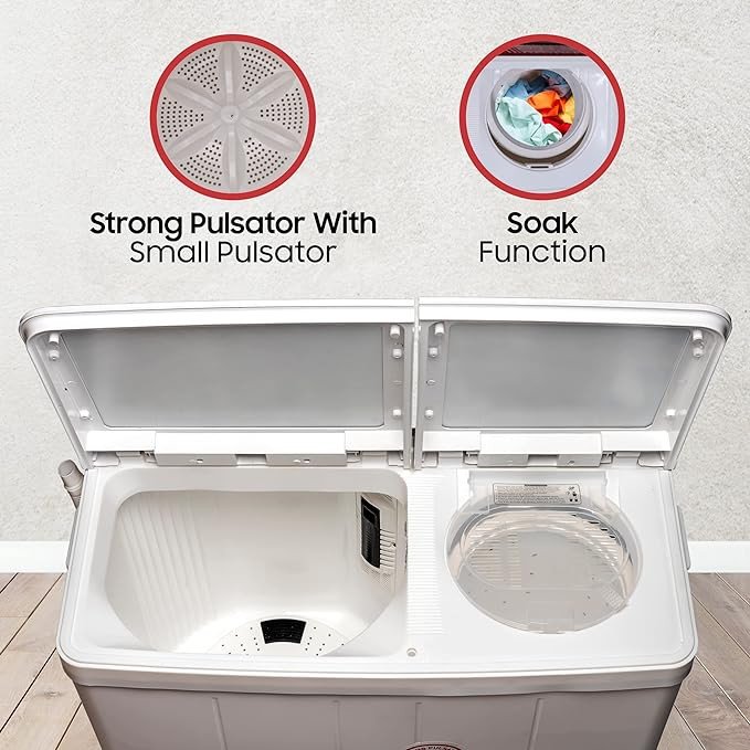 Special Feature: Pulsator with Small Pulsator with Low noise, Castor Wheels, Buzzer, Lint Filter, Transparent Lids, Collar Scrubber, Spin Shower, 2 Wash Programs, Anti Rust Body, Dual Water Inlet System,