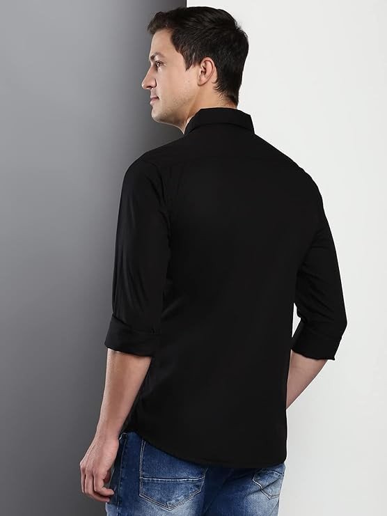 Men's Solid Slim Fit Cotton Casual Shirt with Spread Collar & Full Sleeves