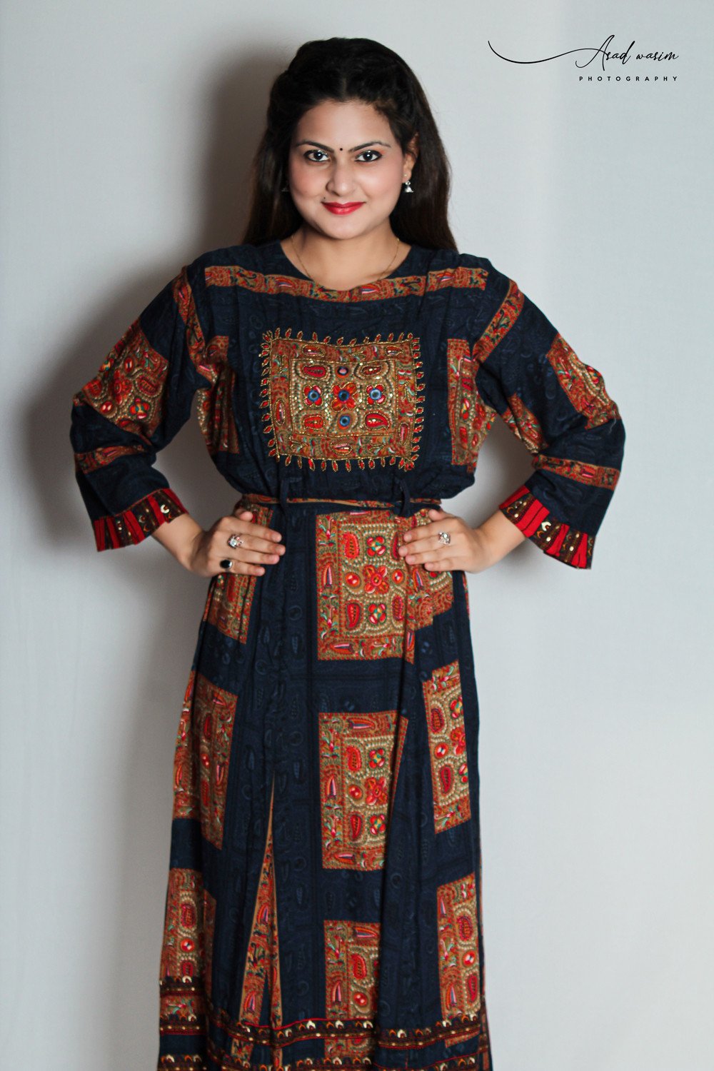 Kurti and Palazzo Fabric- Heavy Rayon Package Content- 1Kurta + 1 Bottom + 1 Dupatta Beautiul Latest Trending and hand block print on the suit