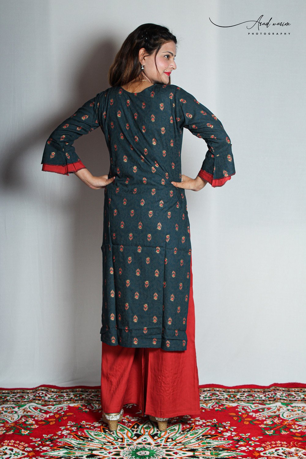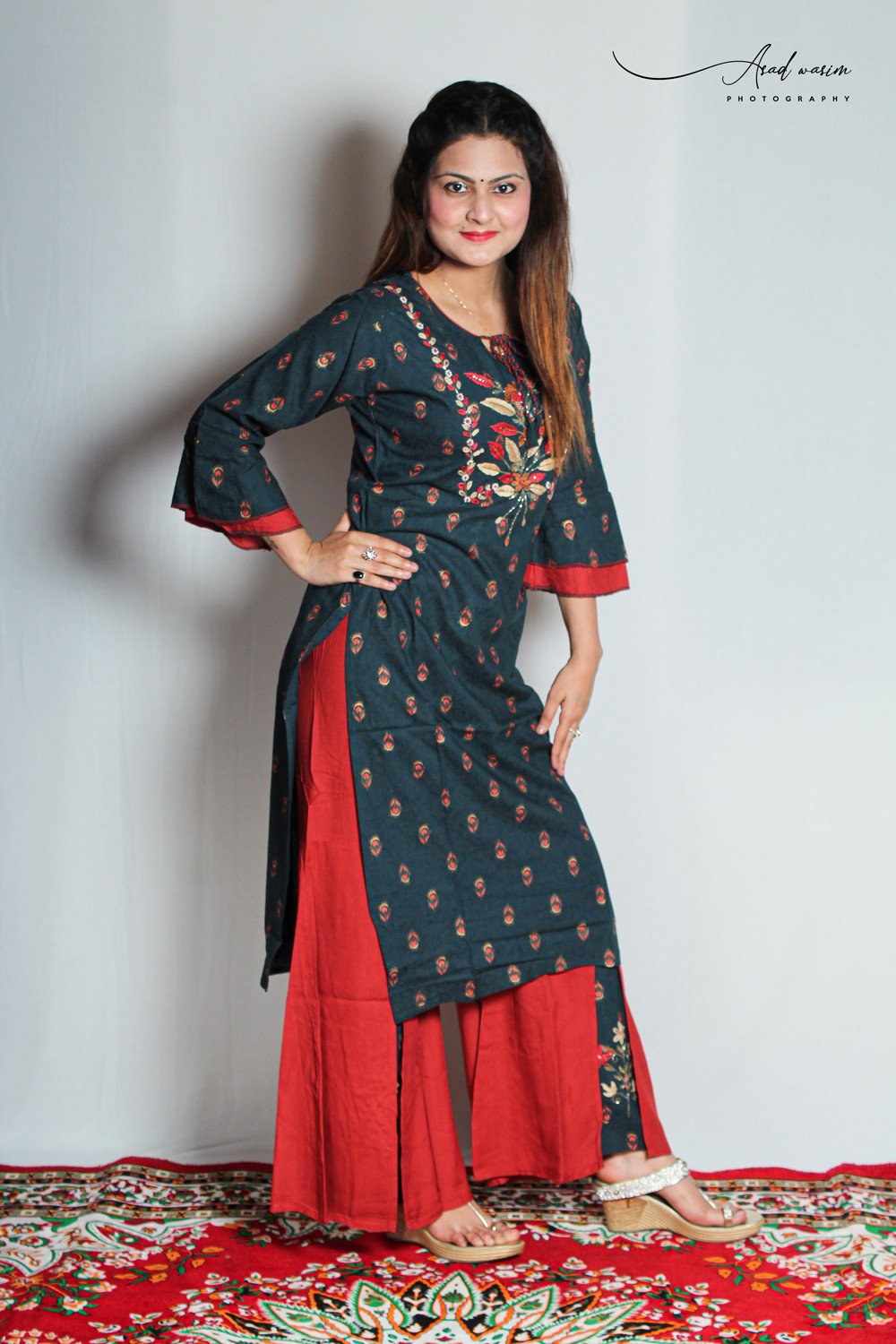 HAMH Kurti and Palazzo Set for Women with Embroidery Hand Work latest design party Wear Rayon Blue