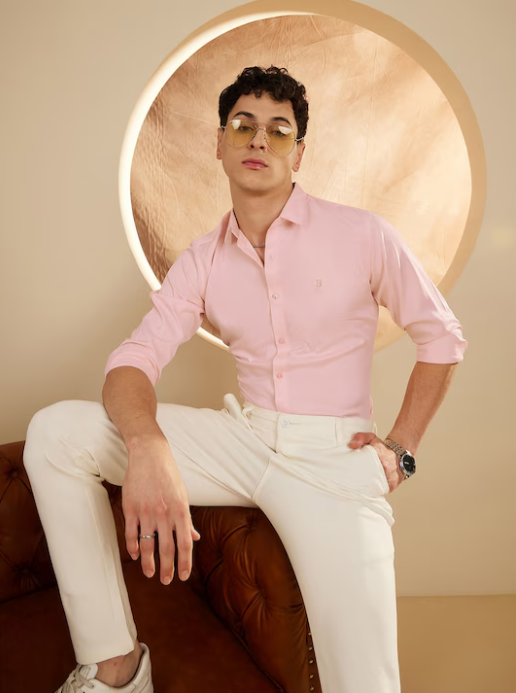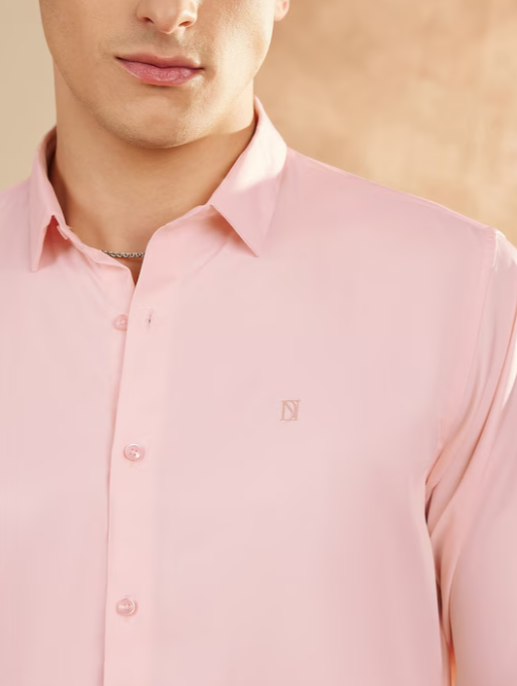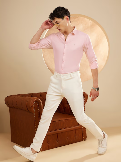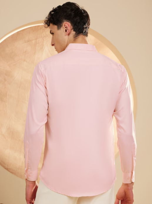 White solid opaque casual shirt ,has a spread collar, button placket, long regular sleeves, curved hem