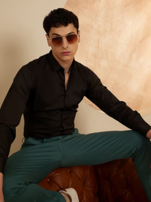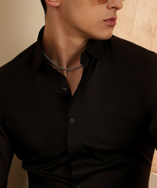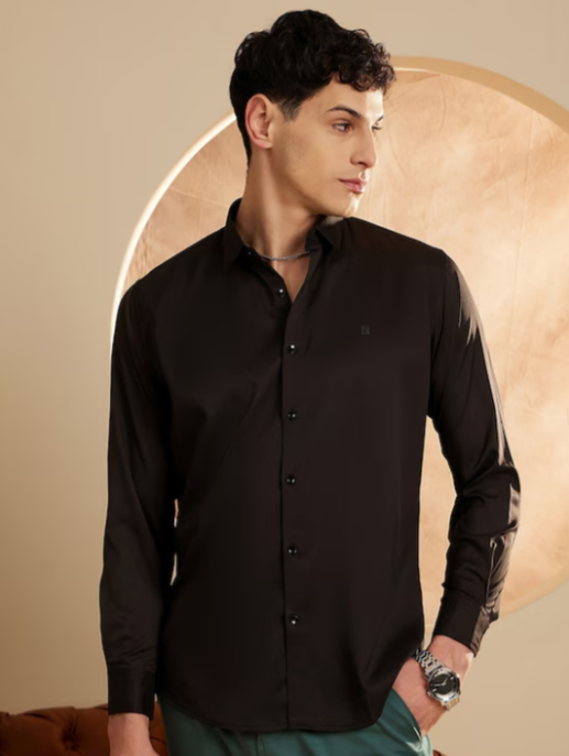 White solid opaque casual shirt ,has a spread collar, button placket, long regular sleeves, curved hem