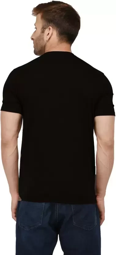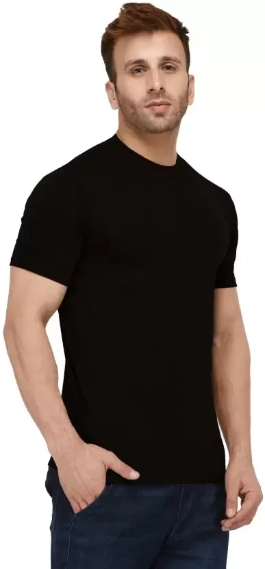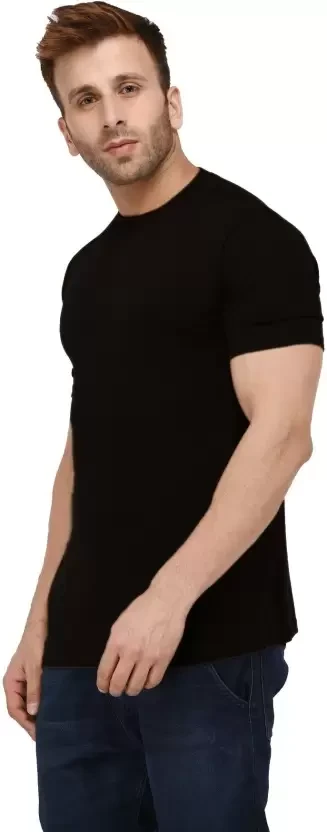Men Solid Round Neck Cotton Blend BLACK T-Shirt