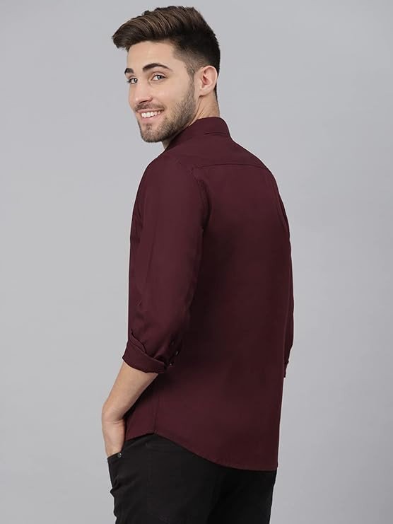 Men's Solid Slim Fit Cotton Casual Shirt with Spread Collar & Full Sleeves